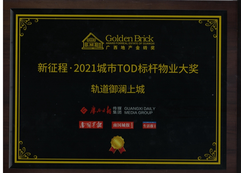 • 軌道御瀾上城項目獲得廣西地產金磚獎“新征程·2021城市TOD標桿物業(yè)大獎”