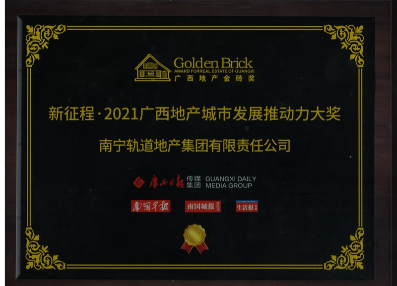• 公司獲得廣西地產金磚獎“新征程·2021廣西地產城市發(fā)展推動力大獎”