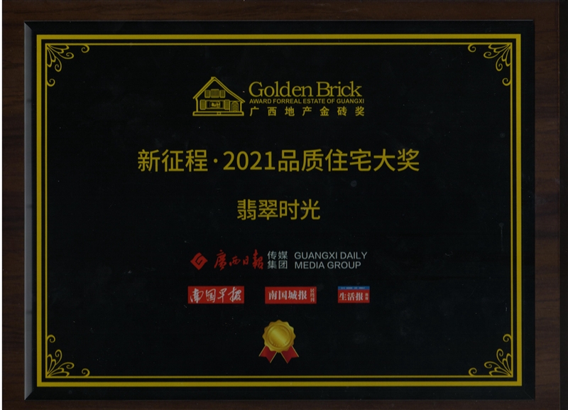 • 翡翠時光項目獲得廣西地產金磚獎“新征程·2021品質住宅大獎”
