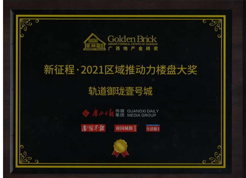 •  軌道御瓏壹號城項目獲得廣西地產金磚獎“新征程·2021區(qū)域推動力樓盤大獎”